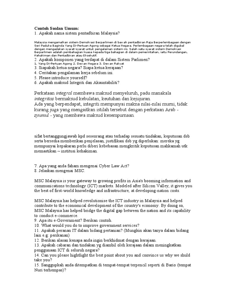 Soalan Temuduga Pegawai Tadbir dan Diplomatik. A Malaysian Computer Emergency Response Team. Saya peka kepada perubahan persekitaran.